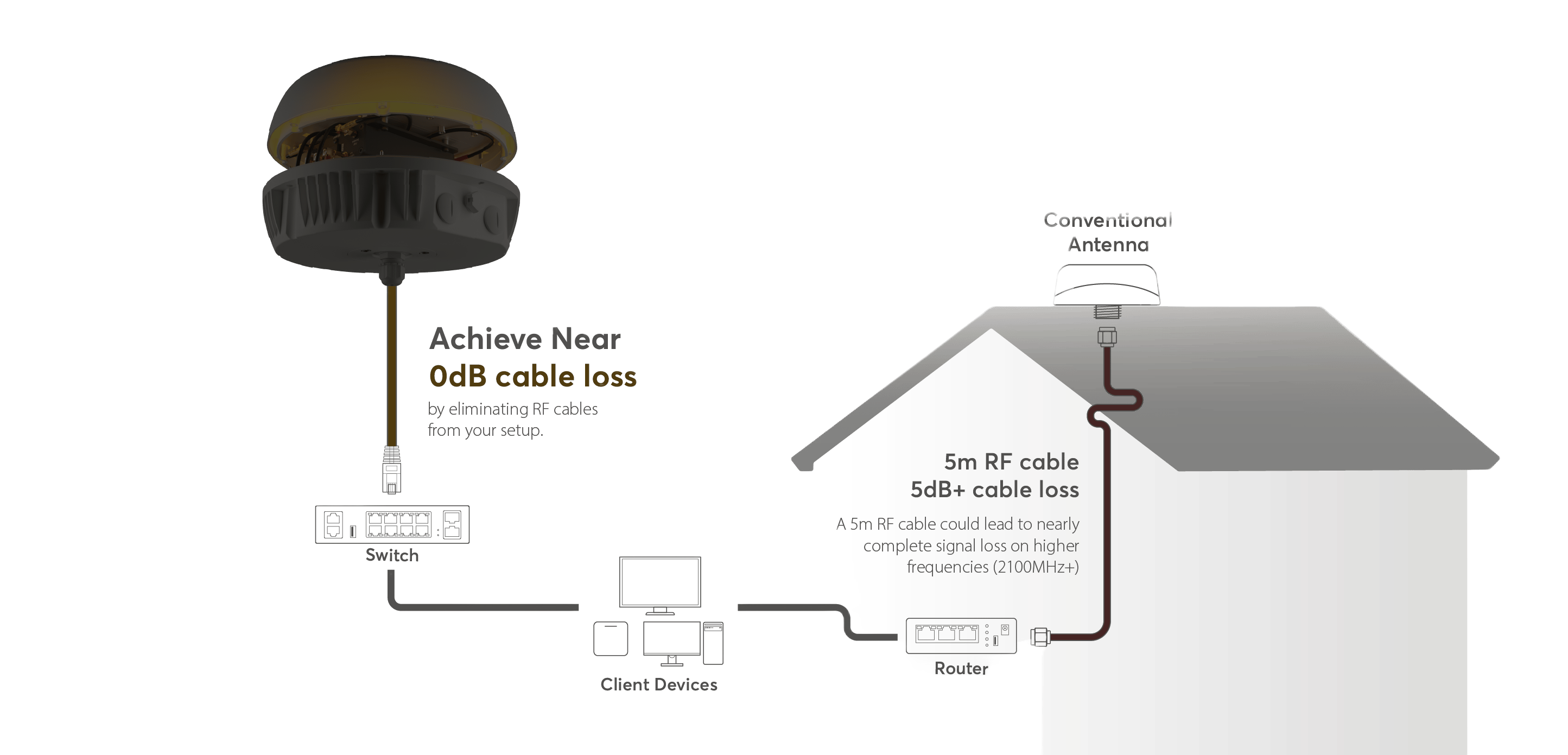 Minimize cable loss by installing your router directly into the antenna enclosure. Retain maximum signal gain by connecting the Antenna MAX to the rest of your network with an ethernet cable.